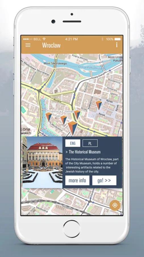 - Map with your current location and all points around you. Explore them and discover more details about Jewish history with a lot of graphic material like images, videos and more