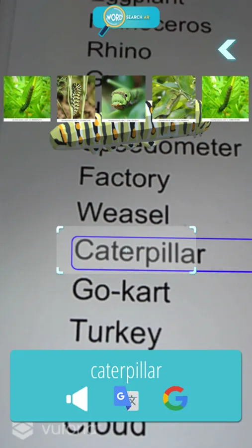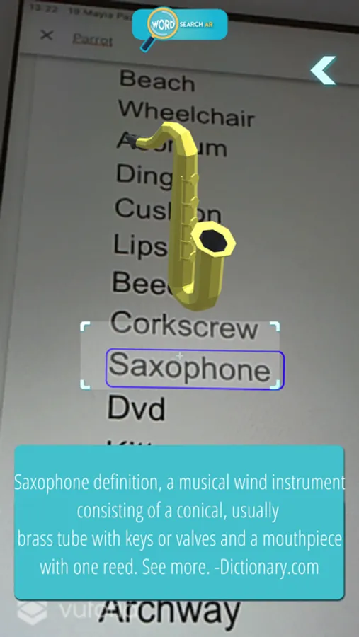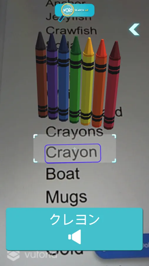 With 3D Dictionary application, Word Search AR can recognize the English word with your device's camera and shows the 3-dimensional model of the word if it's on the list.