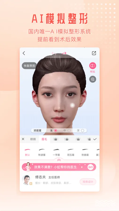 3、3D模拟整形系统——利用先进的3D模拟整形系统,可以生动直观地看见自己整形后的效果,提前看到变美后的自己。