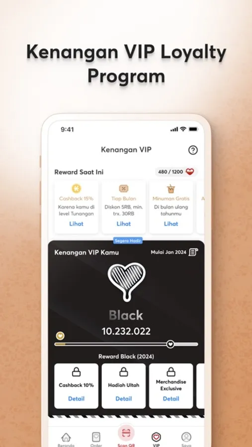 - Collect "Hearts" Points in every in-app order to unlock five (5) membership levels.