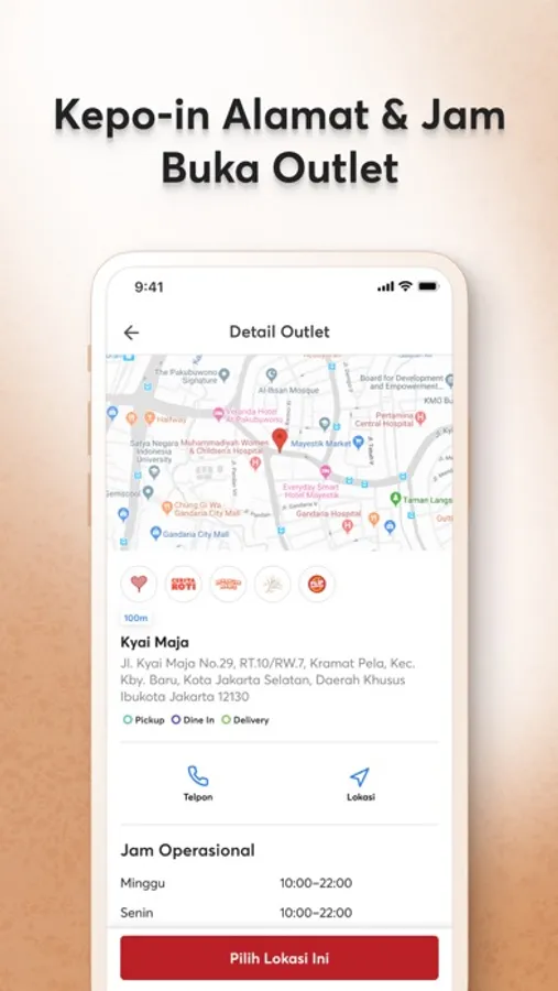 - With more than 800 outlets across Indonesia, the app will help you find the most convenient outlet for you to order.