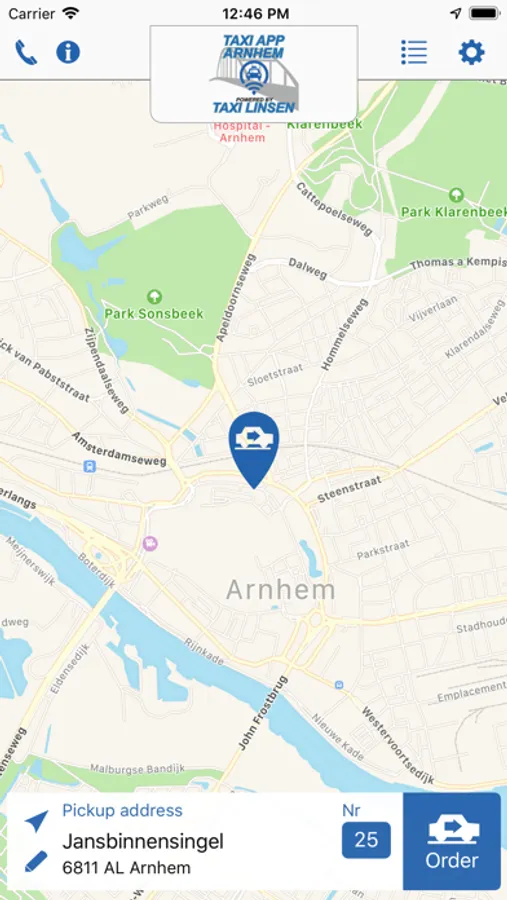 Na het downloaden van de app kunt u direct inloggen en een taxi bestellen. Na het invoeren van de ritgegevens krijgt u een indicatie van de ritprijs te zien.