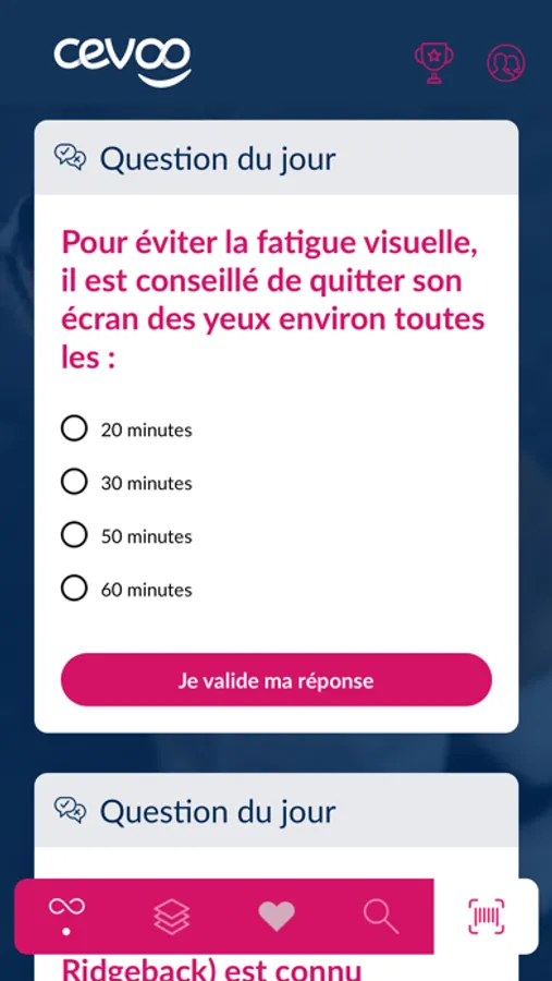 Mais ce n’est pas tout ! Cevoo vous divertit en vous proposant de défier vos collègues en répondant à des quiz et à des sondages tout au long de votre navigation.