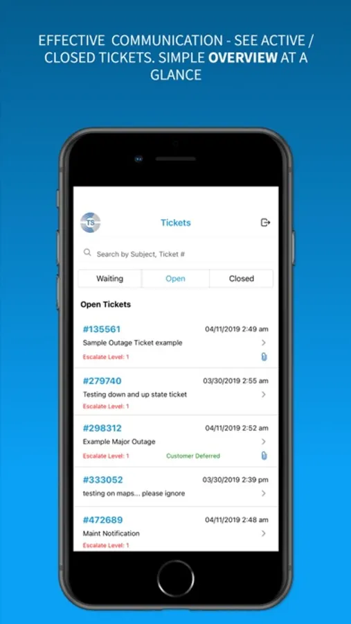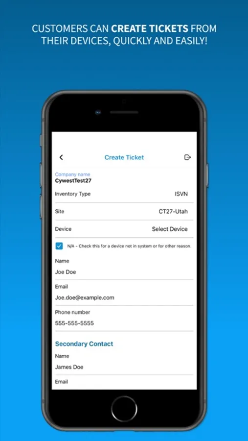 The Cywest TicketSys application is designed to give our customers the ability to create, edit and review tickets from their mobile devices. The app provides a convenient communications method between Cywest clients and staff from any location.