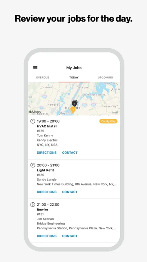 • Review your jobs for the day and receive notifications when your schedule changes.