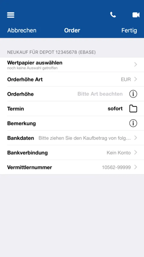 - Wertpapierorder direkt in der App erfassbar