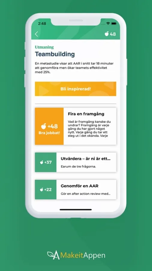 MakeitAppen är Astrakans träningsapp för ledarskap och medarbetarskap. Appen bygger på forskning om effektivt ledarskap och hjälper dig att frigöra tid, minska stress, öka engagemang och nå dina mål.