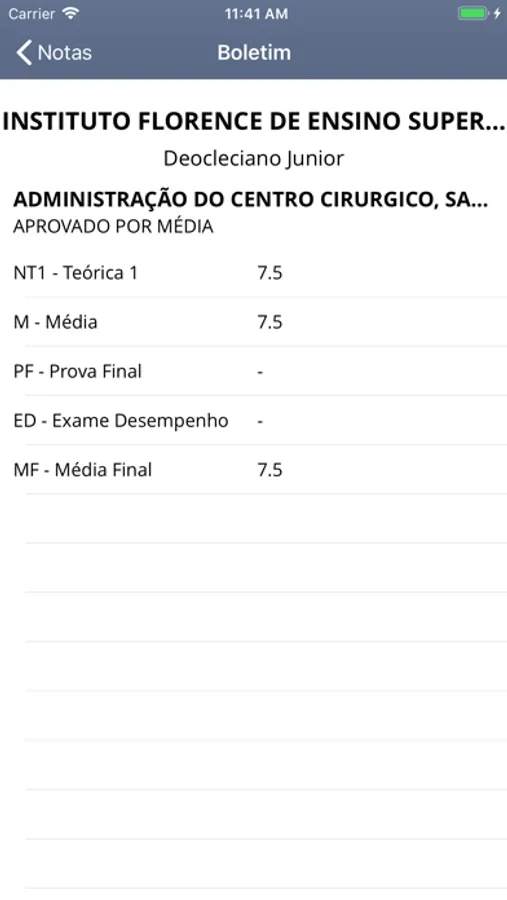 Nele, é possível visualizar todas as informações acadêmicas referente ao seu curso, como: