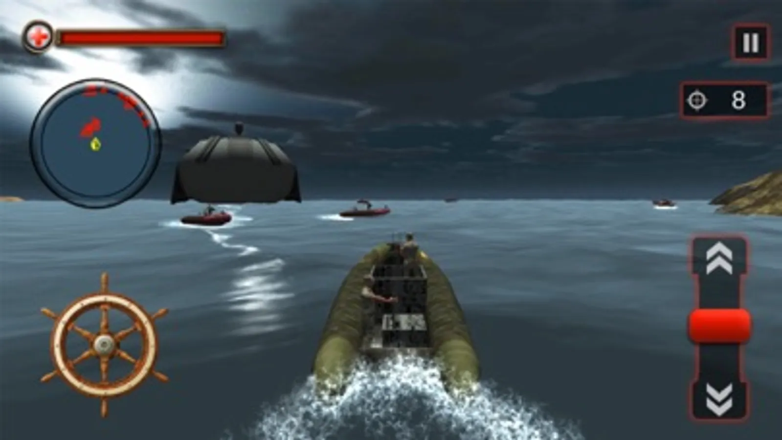 Navy SEAL Special Ops Battle is water based action packed game with multiple tasks in battle. You have to shoot enemy soldiers, sail army boat on water or shoot down enemy boats and many more. The levels keep getting difficult as the game progress. Play as marine soldier and face the modern battle on water. Play action filled newest shooting game in your Apple phone and tablets. So get ready to enter into real war over ocean waves. Destroy enemy warships use modern day firearms in Navy SEAL Special Ops Battle. Fight for the glory and you nation.