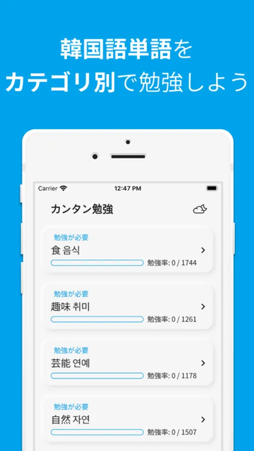 韓国語単語勉強アプリ、カンタン勉強(韓国語単語)