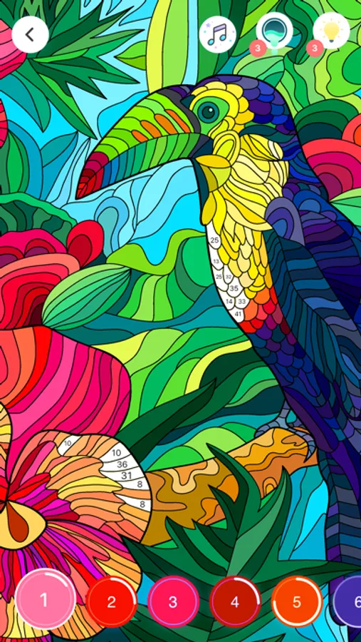 Unlike other art games, our antistress coloring app is super straightforward. You don’t have to be a professional artist to use it – even an amateur can enjoy this free color by number app. To make the process of coloring simpler and easier, this adult coloring book uses a tap-to-fill style of coloring. To start, simply download and open this relax coloring app, choose a category from the color book, and select a picture. Then tap on the colors with numbers to select them and automatically zoom in on the spaces to color. Unlike other art games, it’s impossible to make a mistake and choose the wrong color while coloring pages.
