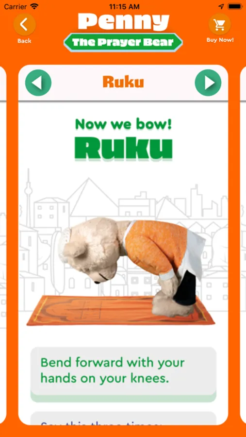 Download our fun app and enjoy teaching your child how to pray with Penny the Prayer Bear. It has really cool features, such as a step-by-step guide on preparation (Wudhu) and prayer (Salah). So your child will know all the things to say and do. We’ve kept it simple, everything is broken down into easy to read chunks, which makes it easier to understand and remember. You also get a prayer compass too, so your children will know which direction to pray in. And there is a little section about Penny the Prayer Bear himself, about how he loves helping orphans.