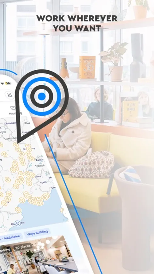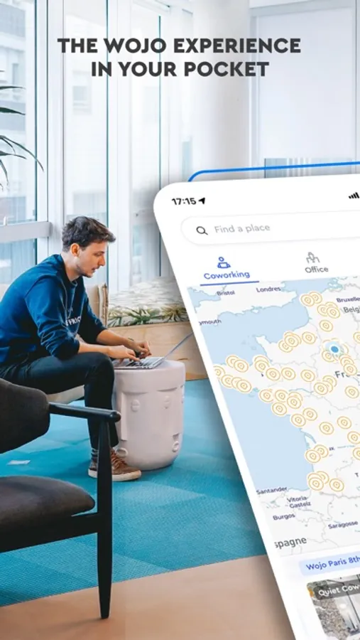 - thanks to geolocation, the Wojo app shows you the available workspaces around you,