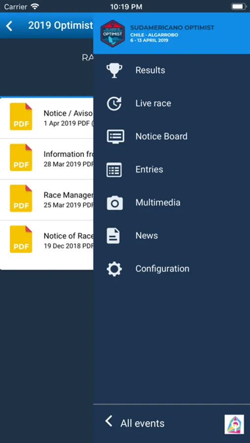 Live information on all races; constant results updates; daily news, images and videos of the regatta are some of the examples offered by this App to enable you to track down to the minute everything that is going on during every Optimisit class major championship. Furthermore, if you wish so, you can receive alerts of any relevant information from any of the races or teams you wish to follow closely.