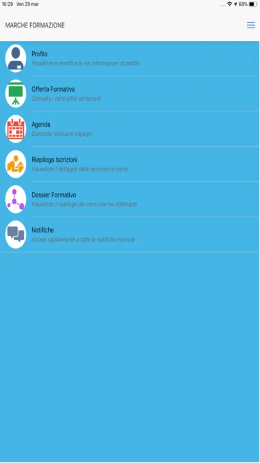 - ricevere notifiche sui corsi o sulle news dell'Azienda direttamente sul proprio dispositivo