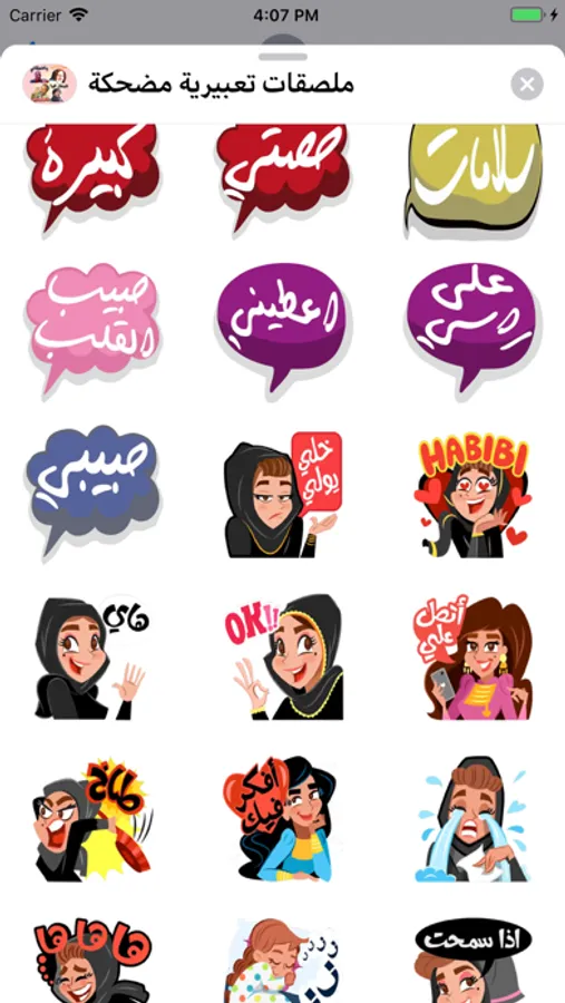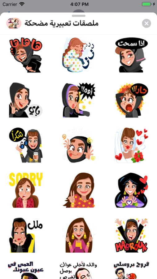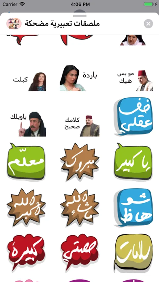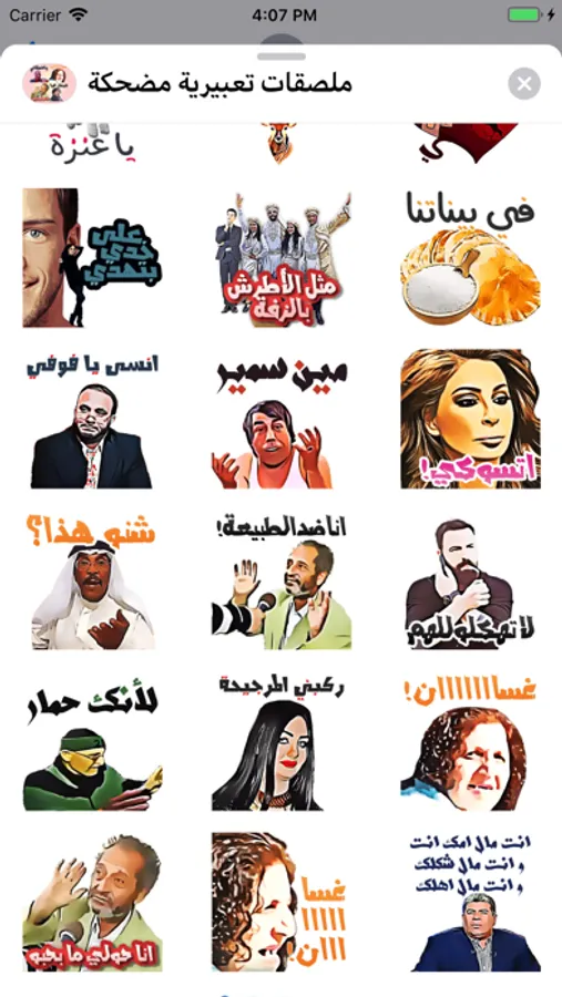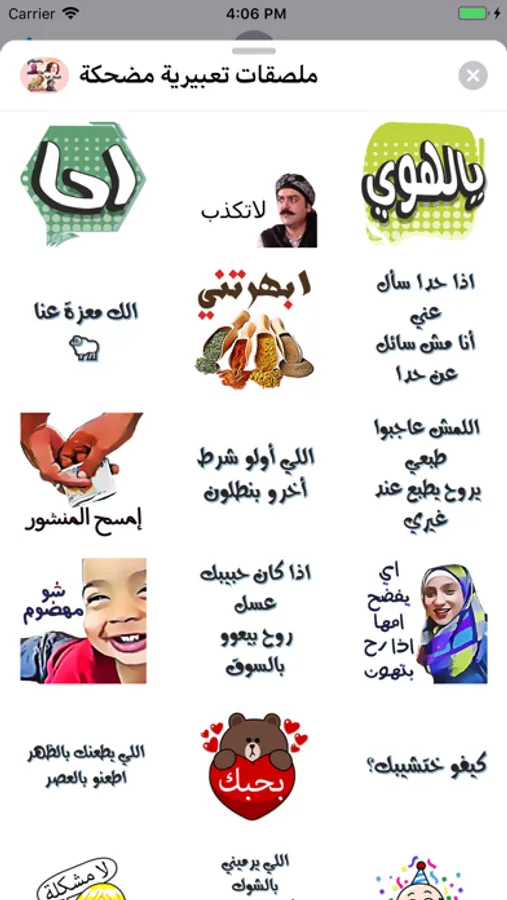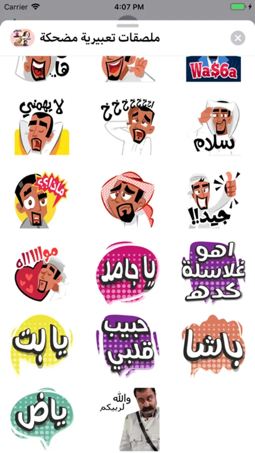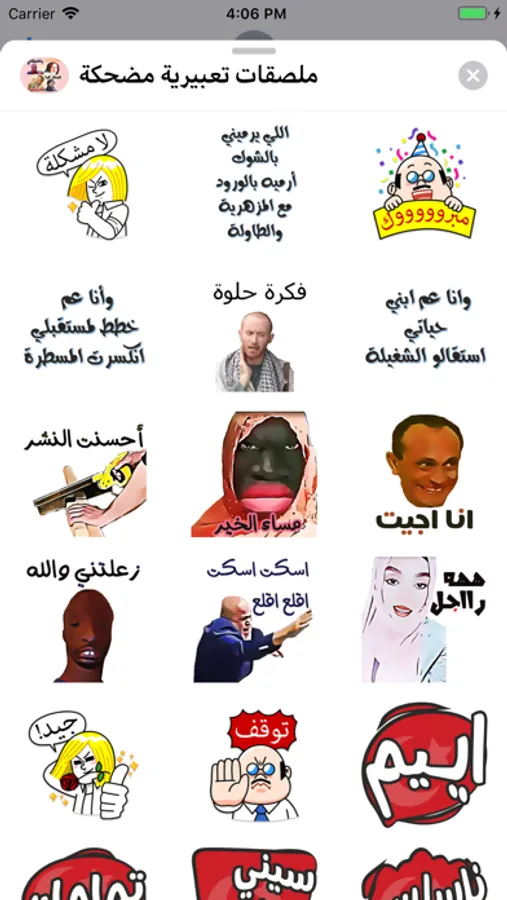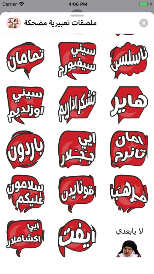 مجموعة كبيرة من التعليقات المصورة والمضحكة . اكثر من 150 ستيكر مصور للتعبير بها فى رسائلك اليومية