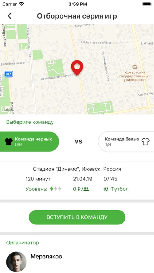 Играем в мяч – незаменимое приложение для того что бы собрать команду для игры, или присоединиться к существующим командам.