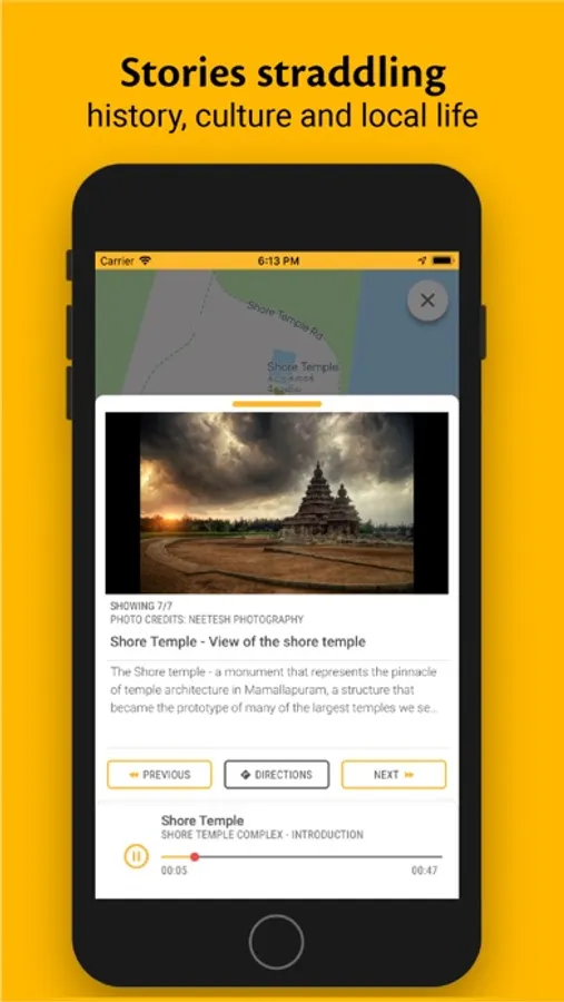 These tours are ‘location-aware’ meaning that the app senses when you have reached a certain point and automatically prompts you with the relevant content. You can choose to play, pause or replay the content at your own convenience. You can also manually select any location on the map and play the associated stories, without even visiting the location.