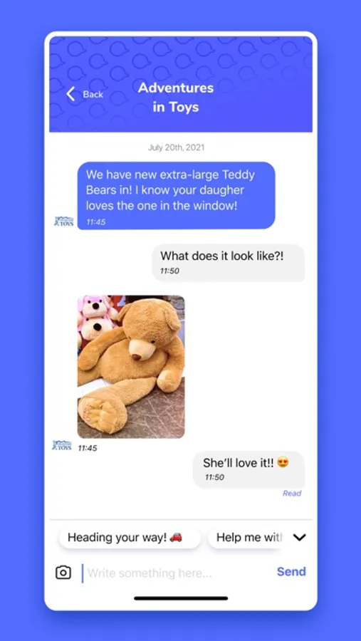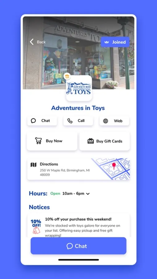 • Use the chat feature to make customized requests and to get expert advice directly from your favorite businesses