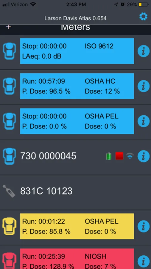 LD Atlas allows you to communicate via Bluetooth or WiFi with Larson Davis Spartan Noise Dosimeters - Models 730 and 730IS, SoundAdvisor Sound Level Meters - Model 831C, and Human Vibration Meters - Model HVM200, and 831-INT-ET. You can view meter status, calibrate meters, make measurements, review measurement data, create and view PDF reports, and analyze data.