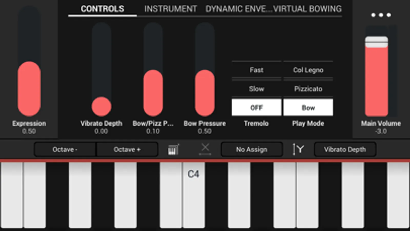 Control the instrument’s expressivity in real-time directly through the touch control interface on your iPhone or iPad including the exclusive virtual bowing touch surface!