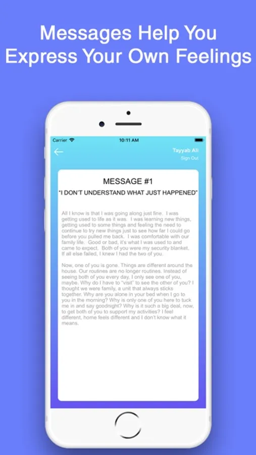 Divorce is hard and even more painful when you consider the impact it might have on children. Although we as parents want the best for our children, the emotional weight of divorce can form a barrier that prevents us from openly communicating. 39 Messages, provides additional support to parents and their children by helping them express the many emotions they experience and providing perspectives that can lead to a better understanding of each other. 39 Messages makes it easier for children and parents to have the conversations needed for everyone to positively move forward in life.