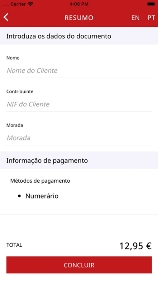 • Introdução, por parte do cliente, dos dados fiscais, evitando erros na faturação.