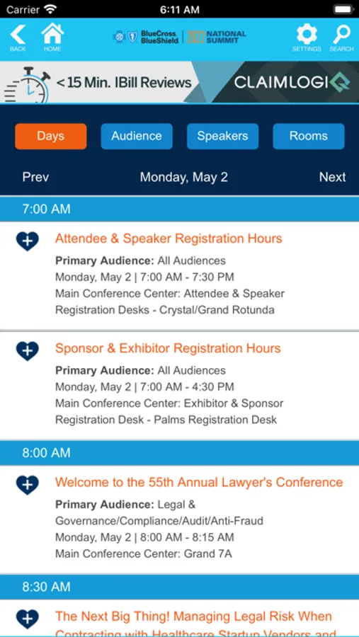 Features includes: Session schedule, Exhibitor list, Attendee list, in-app messaging, surveys, notes, CE, and much more!