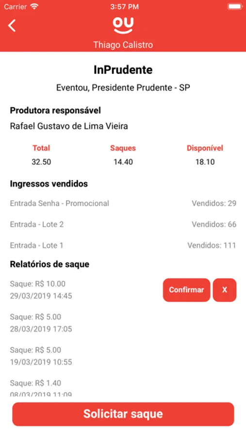 Aplicativo para Promoters realizarem vendas dos eventos da Eventou