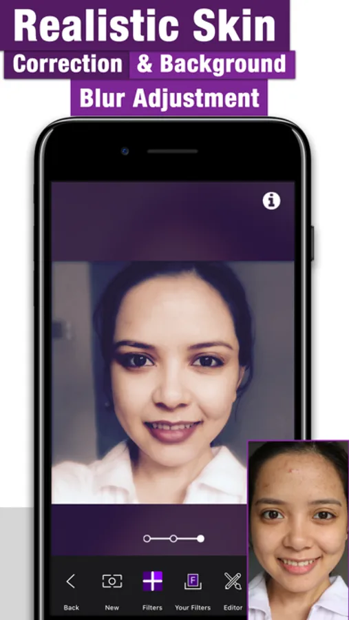 The build-in editor allows manual skin correction, text & graphic addition & image property modifications.