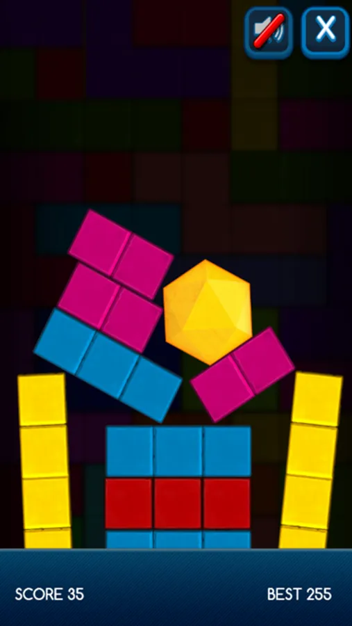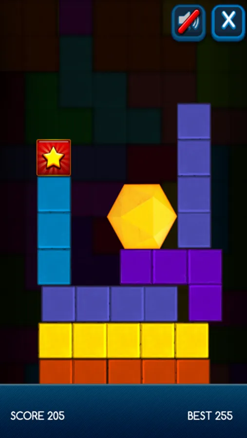 The game play is simple: there is a tower of blocks of various shapes, upon which sits another hexagonal block. The aim of the game is to move the hexagon down the screen to earn points. To do this, you tap the different blocks, which will make them disappear. The hexagon can then fall into the empty space left behind.