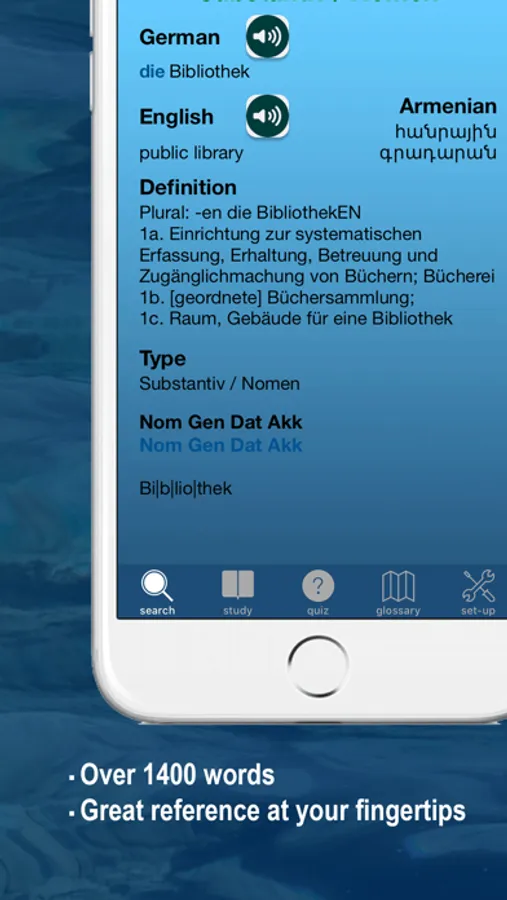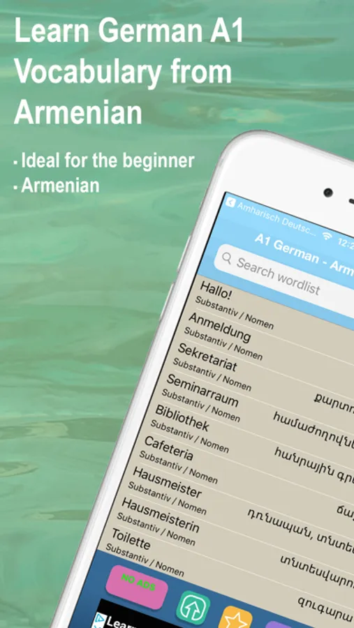 The app is for Learn German from Armenian and contains over 1400 German words for the Armenian learner with audio.
