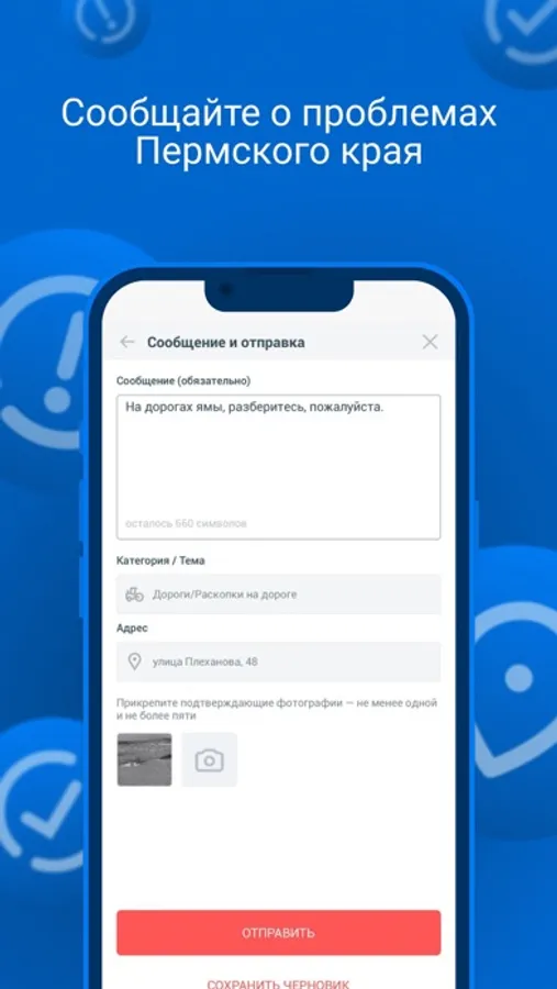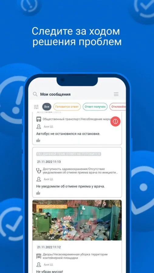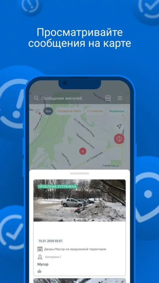 Для того чтобы воспользоваться всеми возможностями приложения достаточно пройти простую регистрацию, после чего Вы сможете влиять на качество выполняемых работ, отправлять обращения и получать ответ в течение 8 дней.