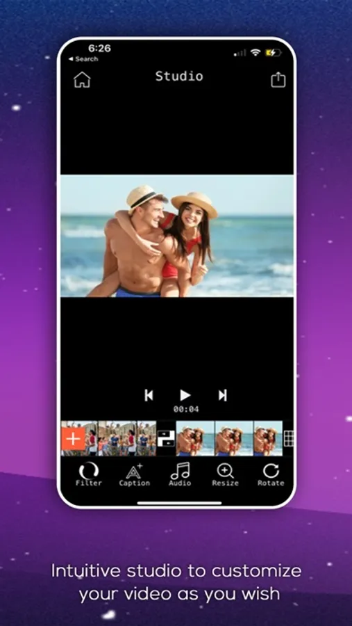 + Intuitive studio to add effects navigate thru your imported videos and pictures, and playback to see your progress.