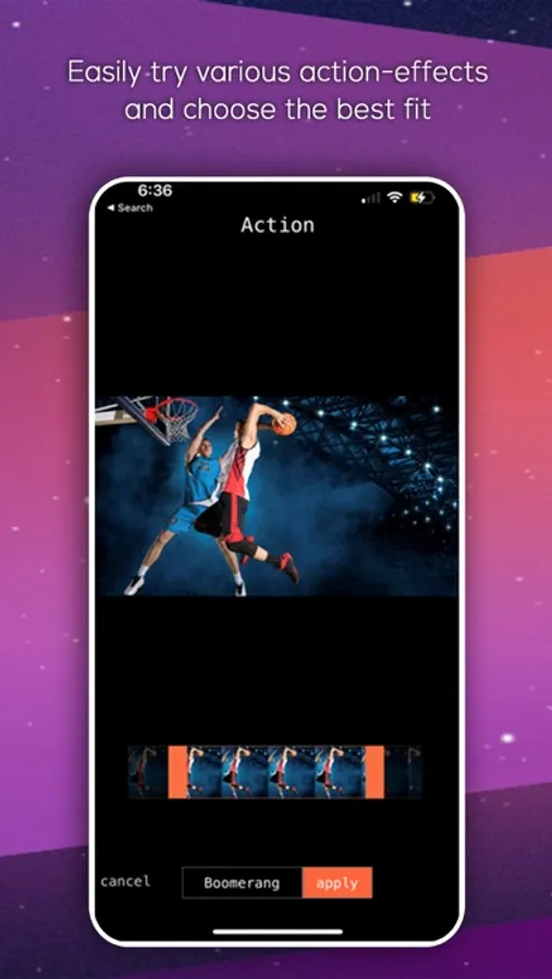 + Video Effects For Action Shots: adjust video speed, reverse a video, play part of a video multiple times, turn a video into a series of images, replay a part of video back in slow motion, , create a Boomerang effect.