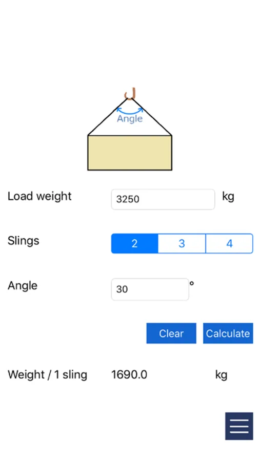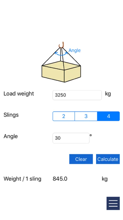 This application can calculate the weight that takes on one sling.