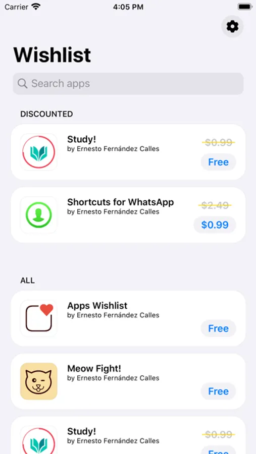 App Wishlist tracks their prices and allows you to check when an app has a discount.