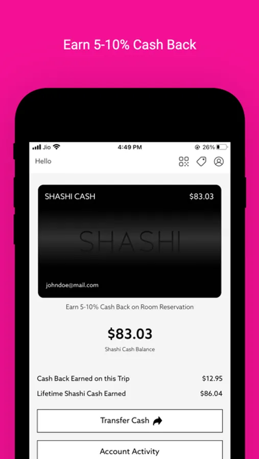 • Enjoy 5-10% cash back on room reservations made through the app through our Loyalty program.