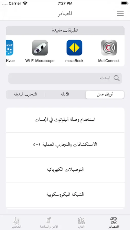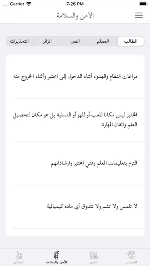 هو تطبيق يخدم فنيي مختبرات العلوم بالسلطنة، يهدف إلى توفير المعلومات المخبرية المساندة لفني المختبر لإكمال عمله وتسهيل عملية إدارة مختبر العلوم المدرسي بأقسامه بضغطة زر في الهاتف، كما أن التطبيق سوف يخدم الطلاب والمعلمين عبر إرشادات مخبرية وتطبيقات مساندة تعينهم في إكمال المنظومة التعليمية.