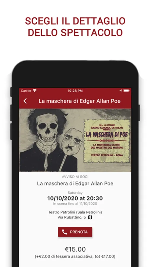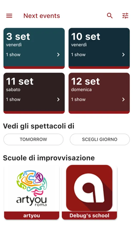 E' inoltre possibile vedere i corsi delle scuole di improvvisazione teatrale, iscriversi e gestire i pagamenti all'interno dell'app.