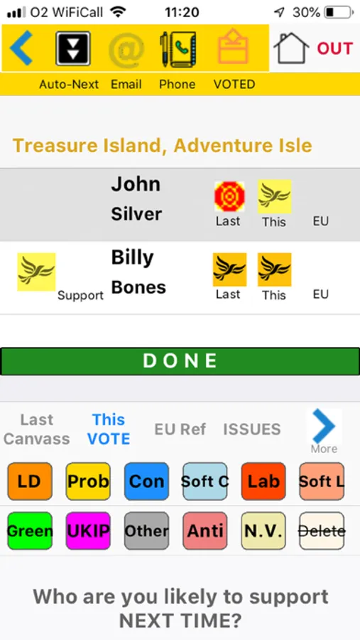 EARSLite can be used for political canvassing, poll day telling and poll day door-knocking of supporter lists.