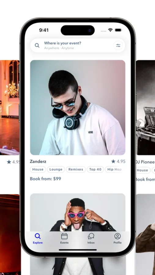 Discover thousands of DJs all over the globe, ready to play at your event. There's a DJ for any occasion and event. Need to set the mood at an opening party? There's who knows how to do it. Want to make your wedding even more memorable? There's an extraordinary DJ ready for you. Or do you need to throw a spontaneous '90s party this weekend? There's a DJ for that too.