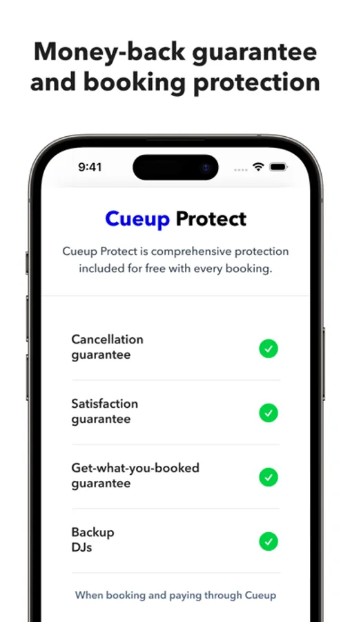 Unsatisfied with the performance? You'll get your money back if you've paid through Cueup. Read more about the terms on our website.