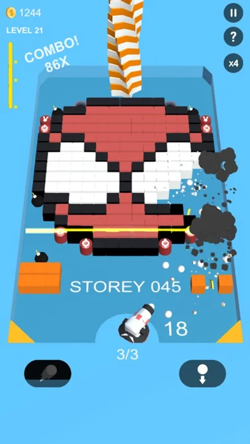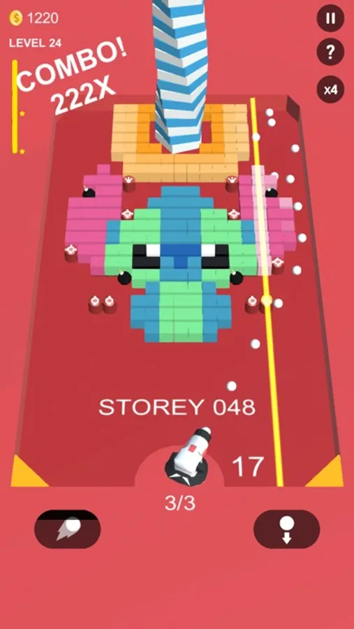 Use special skills: super balls, bombs, ray elimination, iron to help you pass level.