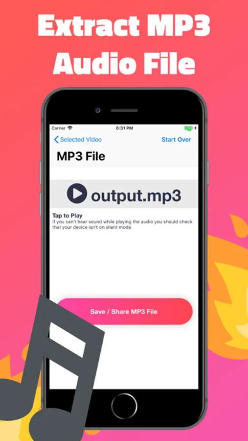 Video to MP3 Audio Extractor lets you easily turn any video file into an mp3 audio file in few taps.