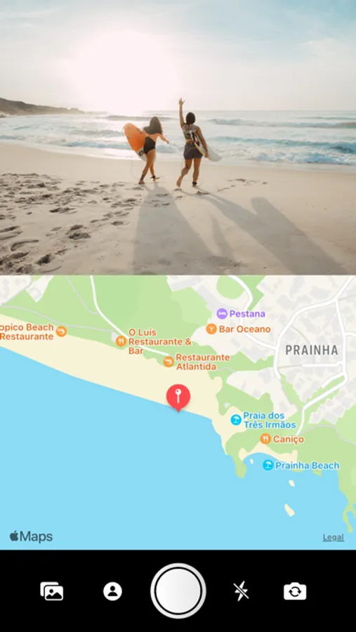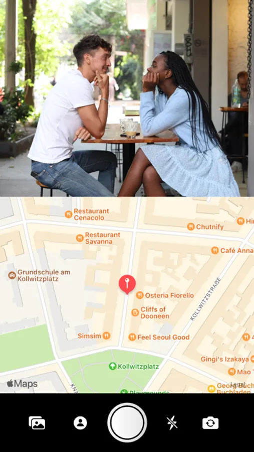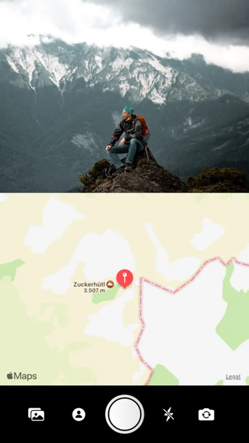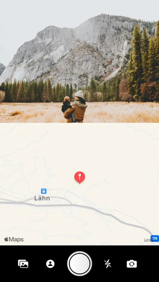 Combine a picture with a map of the location. After taking the picture with the camera or the photo library, you can zoom and move it as you like. The map can be adjusted by zooming in/out or swiping to the desired area. Afterwards the result can be stored in your photo library and shared with your friends.