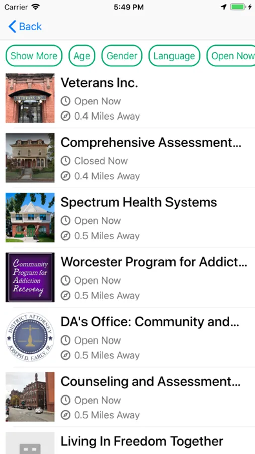 View information about organizations and sort them by the services they offer, the insurance they accept, when they are open, their distance from you, and their eligibility requirements to find the resource that’s best for you.