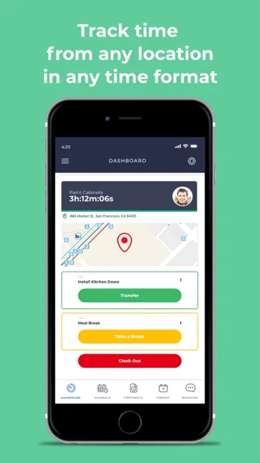 - GPS location is automatically attached to the individual employee timesheet when they clock in or out