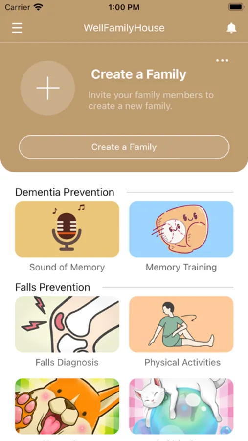 Wellfamily House is a new service for communication between family members. You can invite family members to family page to communicate, to check the comfort of daily life, to strengthen bonds and to develop a family that fits the modern society.