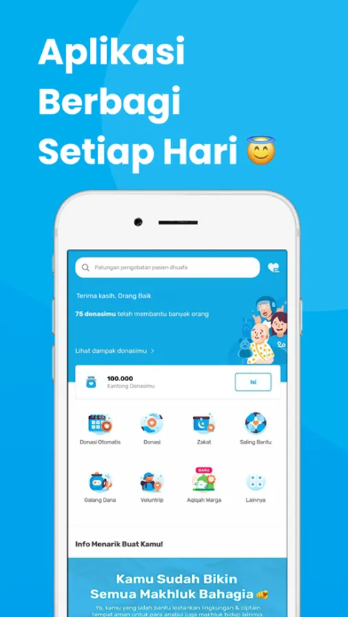 Melalui aplikasi ini, kamu bisa berdonasi online dan berzakat secara rutin dengan mudah dan cepat.